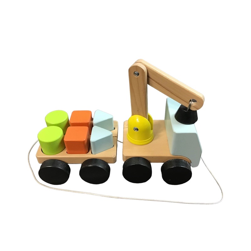 Condition: Gently Used "Your child will love learning about shapes with this fun construction crane that is sure to be a favorite toy for years. This wooden crane is magnetic and can pick up the shapes from the truck."
