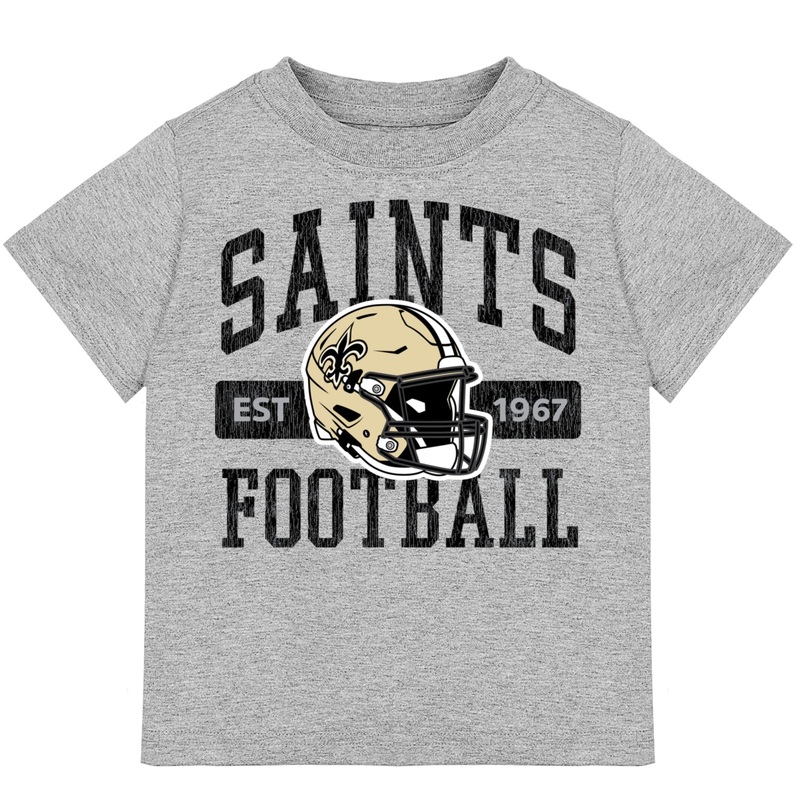 This officially licensed New Orleans Saints Short Sleeve Tee will help your little football fan show his or her team spirit on game day or any other day of the week! The cotton/poly blend short sleeve tee features a comfy, casual crew neck that will make this tee one of your little fans’ favorites. The screen print team logo and helmet is bold and is featured front and center on the t-shirt. Its the perfect tee for warm game days and cool games days, as it may be worn comfortably all on its own or layered over to keep warm. This Saints t-shirt is machine washable to take care of any game-time spills.