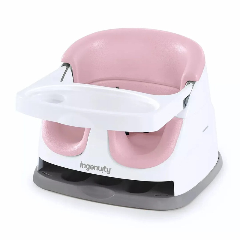 Meals are an important part of family time. Enjoy more laughter and conversation including baby talk by giving your little one a seat at the table with this best-selling booster from the #1 Manufacturer of Feeding Boosters*. The Ingenuity Baby Base 2-in-1 Booster Seat in Peony easily attaches to dining chairs so your baby can sit up higher and see more during family dinners. This portable baby feeding seat has sold 3 million worldwide and works just as well sitting with you at the table or as a floor seat during playtime. The removable tray gives your baby her own perfectly sized table, so snacks or toys are easily within reach. When not in use, the tray conveniently tucks away right underneath the booster seat itself. As your baby grows, you can remove the foam seat insert and convert the baby booster into a toddler seat. A great gift for baby showers, this booster requires no tools for assembly. Third party safety tested and approved. (*Circana, Retail Tracking Service, U.S., Highchairs-Boosters, dollar sales, 12 months ending October 2023)