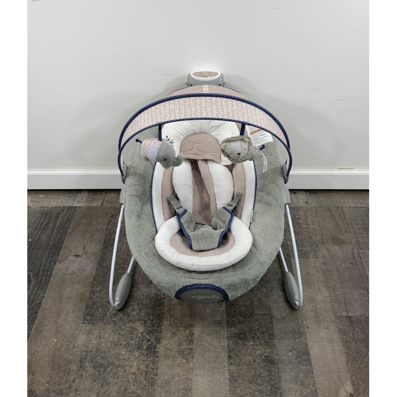 “This amazing bouncer seat has an automatic bouncing feature designed to mimic the natural motions of mom and dad. Choose from 2 distinct bouncing speeds to suit baby’s needs. Features a removable toy bar, and optional music or nature sounds. Battery operated so you can use it anywhere. “