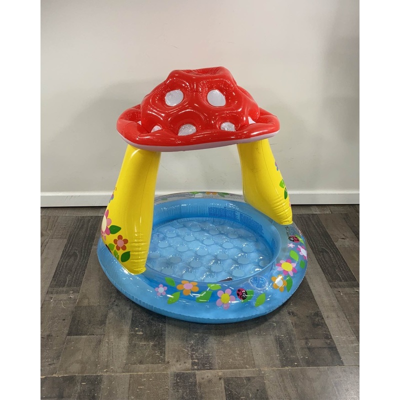 Condition: Gently Used"Perfect spot to enjoy a warm day with friends! Includes an inflatable sun shade to protect from the sun. "Would you rather pay full price for this item? You can find a similar item on Amazon by clicking here Intex Mushroom baby Pool,