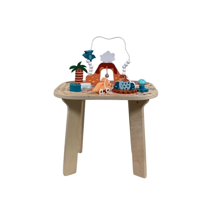 Explore the prehistoric world with the dinosaur activity table! Perfect for little dinosaur fans, this table features a track for pushing the triceratops, a bead maze with a Pteradactlus, and more engaging activities. Ideal for early learning, it stands at the perfect height for young walkers. Part of Janod’s Dino collection, collect all the prehistoric puzzles and toys for endless educational fun.