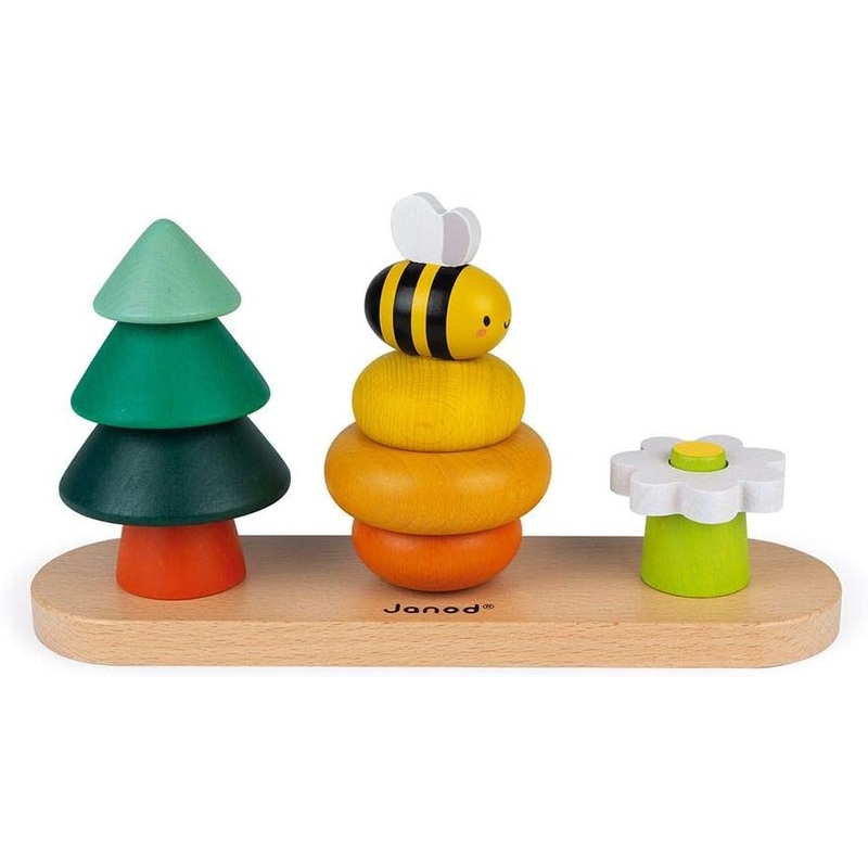 Introduce your baby to the joy of creating with our construction game! Featuring 10 pieces, this set allows 12+ month olds to stack and create a beehive, bee, and flower. Made with FSC-certified solid wood and natural paints. Encourages development of hand-eye coordination and supports WWF’s efforts.