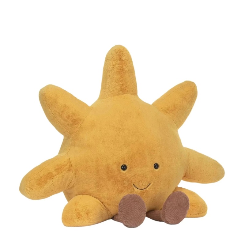 Amuseable Sun is here to brighten up the room! But there’s no need for shades or sunblock this chubby, cuddly bundle of rays is content to glow softly and warm your heart. An all-weather friend in buttery gold, sporting cheery cordy chocolate feet.