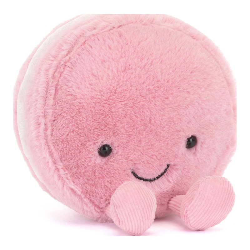 Amuseables Mia Macaron is a fruity, friendly treat in soft strawberry fur. With a velvety filling, matching cord feet, and stitched smile, Mia has an embroidered Jellycat logo on the back for a truly luxurious treat!