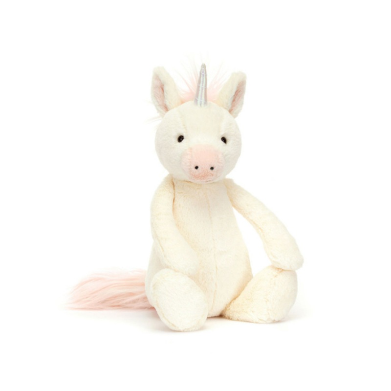 Bashful Unicorn is heavenly to hold, in souffle-soft vanilla fur. This fabulous pal is wonderfully detailed, with strawberry-sundae nose and ears, and silky mane and tail. And check out that squashy holographic horn, shining with magical light!