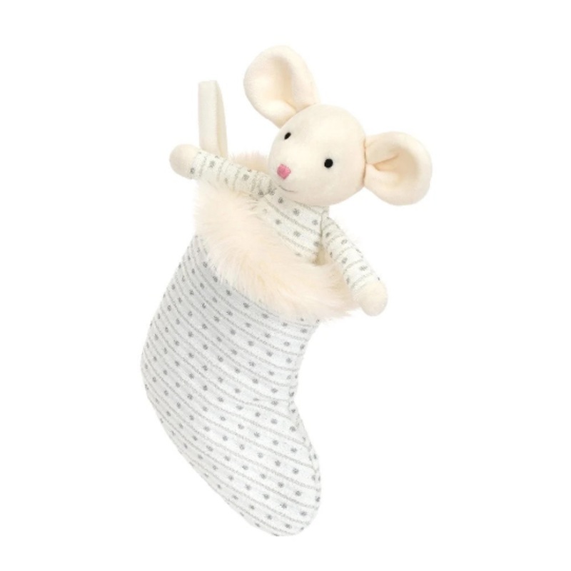 Shimmer Stocking Mouse can’t wait to curl up in a silver padded stocking with glittery stripes! This wriggly sweetie has round creamy ears and PJs that match their fancy stocking. Give this mouse a goodnight hug then tuck them up for very squeak dreams!
