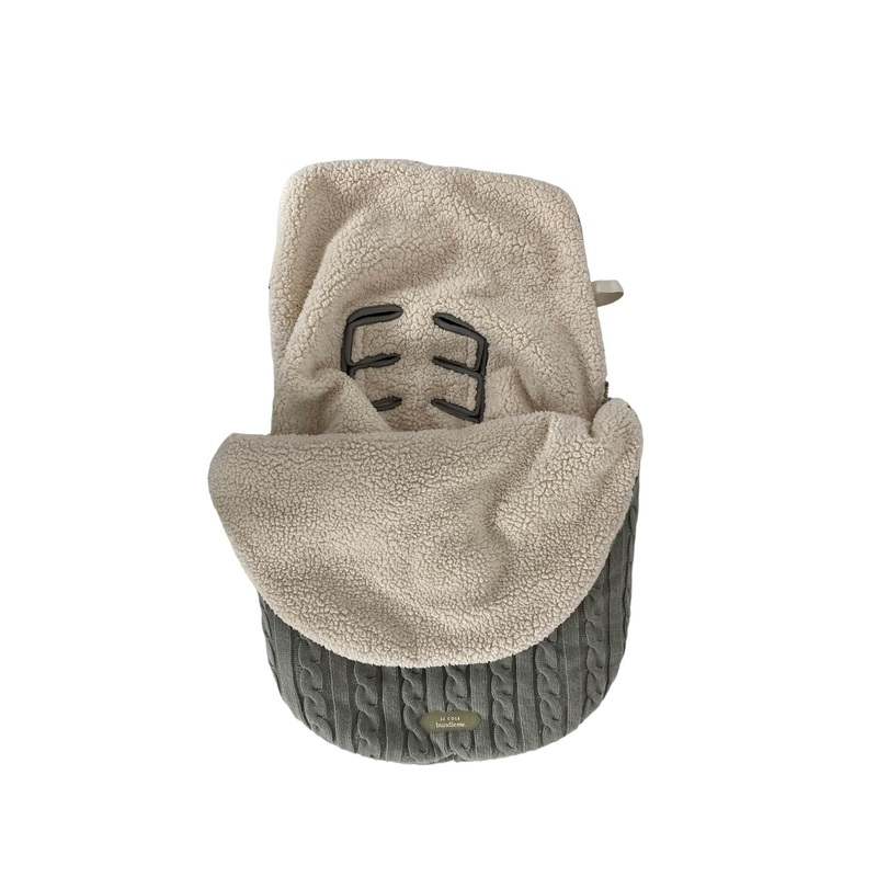 “JJ Cole brings you the knit Bundleme! With a plush inner faux shearling and cable knit exterior, your little one will enjoy maximum warmth and comfort whether in a car seat or stroller.”