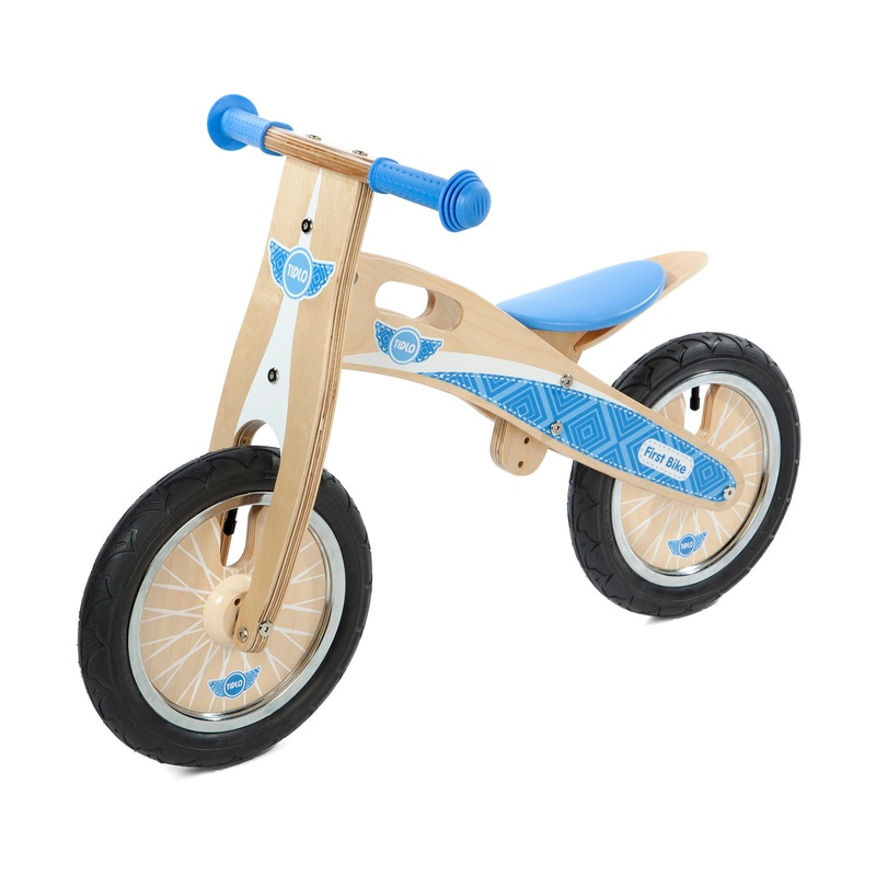 This is a fantastic wooden balance bike for little boys and girls who like all things blue. This lovely first bike has an adjustable blue saddle, blue easy-grip handle bars, pneumatic tyres with blue spiral inners and a useful carry handle in the cross bar