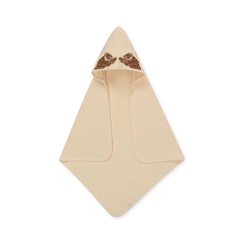 Das Frottee-Badehandtuch mit Kapuze und Stickerei Tiger von Konges Slojd ist ein hochwertiges Produkt, das aus 100% Bio-Baumwolle hergestellt wird. Die Verwendung von Bio-Baumwolle garantiert nicht nur eine nachhaltige Produktion, sondern auch eine besonde