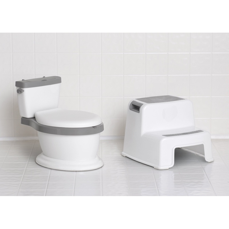 This versatile Kid Size Potty and Step Stool Set by Delta Children includes two potty training essentials, a realistic potty and step stool. The pottys realistic design resembles an adult toilet, making it the perfect toilet training tool for your little one. Packed with a ton of features that help boost your childs potty confidence, this training toilet features a flusher, full-size wipe compartment, soft foam seat and flip lid that opens and closes just like an adult toilet. What else makes this training toilet awesome? Its so easy to clean! The pottys non-slip feet prevent slipping and sliding, plus it features a removable bowl and integrated splash guard that makes it perfect for boys or girls to use. The included step stool allows kids to comfortably reach the toilet, stand at the bathroom counter to wash their hands, brush their teeth or help out mom and dad in the kitchen. The step stool features non-slip feet that provide a secure surface on all floor types. It also has soft-grip steps, giving children the comfort and support they need. The dual height design accommodates different ages and heights, toddlers can use the top step as they potty train while older children can use the bottom step in the kitchen or beyond. Get the Kid Size Potty and Step Stool Set by Delta Children when its time for your little one to start their potty-training journeyit will help them conquer toilet training easily and quickly!