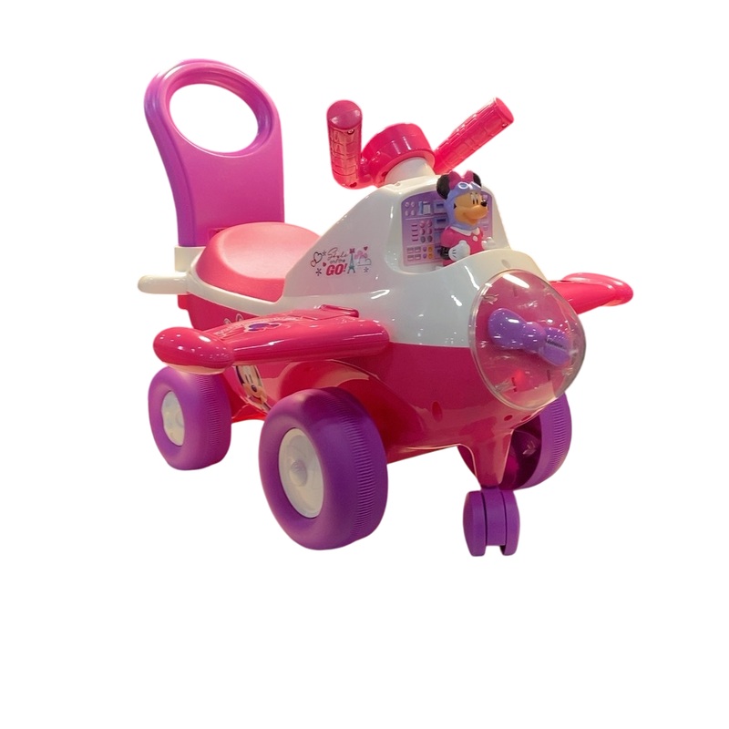 What could be more fun for a toddler than whooshing around the room on this adorable Minnie Mouse airplane ride on?! Plays music with colorful flashing lights and the propeller really spins