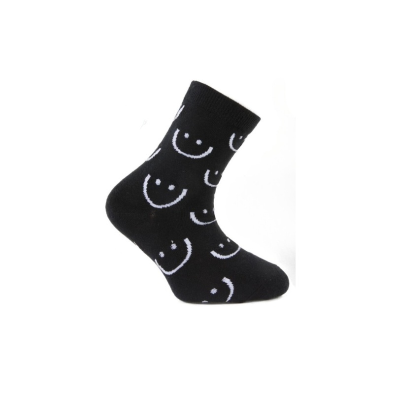 Kids’ Black Ankle Socks with Smile Print | CSG200-013-BL