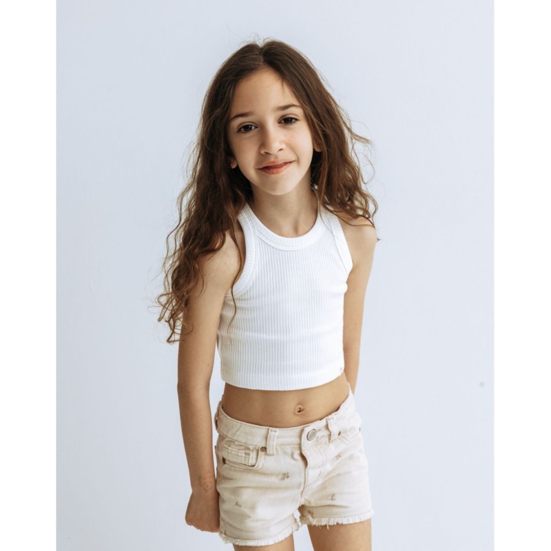 The collection is made of ribbed fabric combined with high-quality textural cotton for maximum comfort with spring prints and sweet details. Rib tank top. Comes in sizes 2-3 to 7-8. Washing instructions according to the label.
