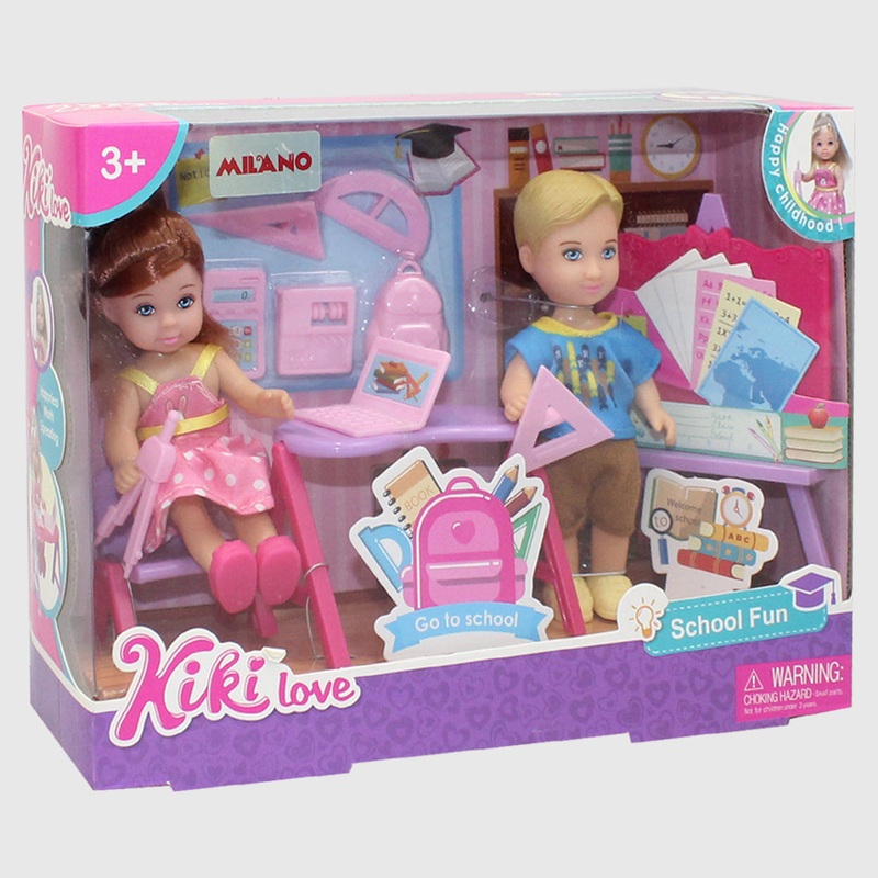 - This Kiki Love School FunDoll set include 2 Kiki dolls, a boy and a girl, with open-blue-eyes in cute outfits, a studying board, a studying table, a laptop, and many more school accessories.
