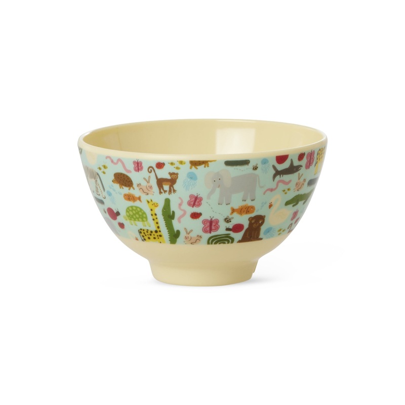 Mit unserer kleinen Schssel mit niedlichen Tieren auf einem mintfarbenen Hintergrund wir nennen den Print Wildlife bringst du Freude an deinen Tisch! Sie besteht aus Melamin, das aufgrund seiner Robustheit und einfachen Reinigung langlebig und ideal fr den