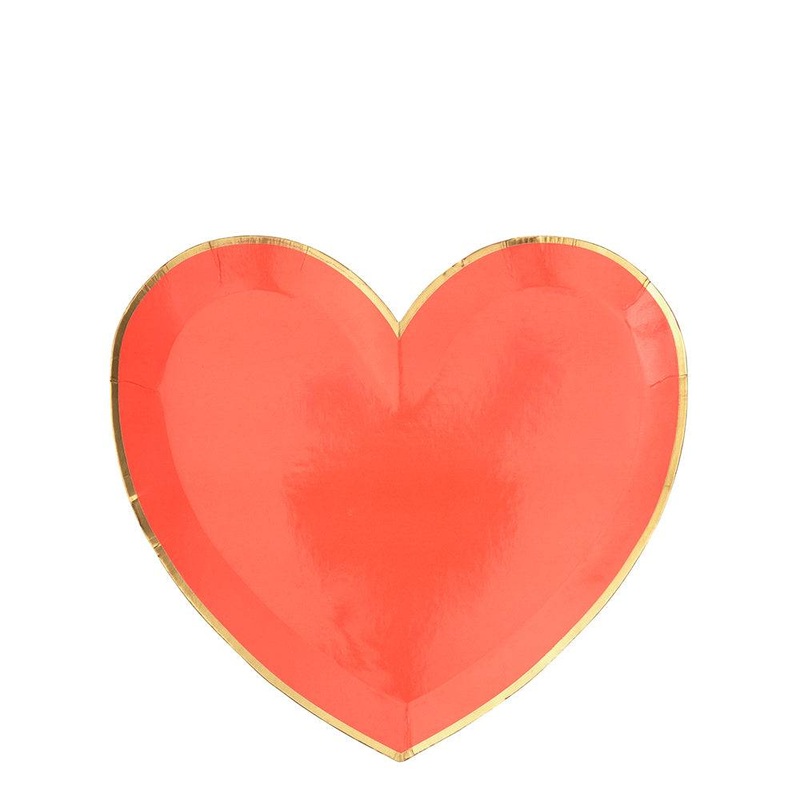 Herzform- Partyteller von Meri Meri fr den Valentinstag oder fr die Prinzessin- Motto- Party.Acht beidseitig bedruckte Teller mit wunderschnem Goldrand.Abmessung: 19,4 x 18,1 cm