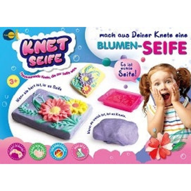 Das Knet Seife-Blumen Set von Fun Trading ist ein kreatives und unterhaltsames Produkt, mit dem Sie Ihre eigene Blumen-Seife herstellen knnen. Das Set enthlt 4x 30g Knet-Seife, die ausreichen, um mindestens 2 Seifen herzustellen. Auerdem sind ein Seifensckchen, eine Abdruckform und eine detaillierte Anleitung im Set enthalten.Die Knet-Seife hat die einzigartige Eigenschaft, dass sie zunchst weich wie Knete ist und sich daher leicht formen und modellieren lsst. Sobald die gewnschte Form erreicht ist, wird die Knet-Seife einfach an der Luft getrocknet und hrtet aus, um eine feste und duftende Seife zu bilden. Dieser Prozess macht das Herstellen von Seifen zu einem spaigen und kreativen Erlebnis fr die ganze Familie.Das Seifensckchen dient dazu, die fertige Seife aufzubewahren und zu verwenden. Es ermglicht zudem ein sanftes Peeling der Haut beim Waschen. Die Abdruckform bietet die Mglichkeit, verschiedene Muster und Designs in die Seife zu drcken, um individuelle und einzigartige Seifen zu kreieren.Die beiliegende Anleitung fhrt Schritt fr Schritt durch den Herstellungsprozess der Blumen-Seife und gibt hilfreiche Tipps und Tricks fr ein optimales Ergebnis. Auch Anfnger knnen mithilfe der Anleitung problemlos ihre eigene Seife herstellen und dabei ihrer Kreativitt freien Lauf lassen.Das Knet Seife-Blumen Set eignet sich nicht nur als kreatives Geschenk fr Kinder, sondern auch als entspannendes Hobby fr Erwachsene. Die Mglichkeit, individuelle Seifen herzustellen und dabei verschiedene Dfte und Farben zu kombinieren, macht das Set zu einem vielseitigen und unterhaltsamen Produkt.Mit dem Knet Seife-Blumen Set knnen Sie Ihrer Kreativitt freien Lauf lassen und Ihre eigene duftende und einzigartige Seife herstellen. Gnnen Sie sich und Ihren Liebsten eine entspannende Auszeit beim Herstellen und Verwenden der selbstgemachten Seifen.