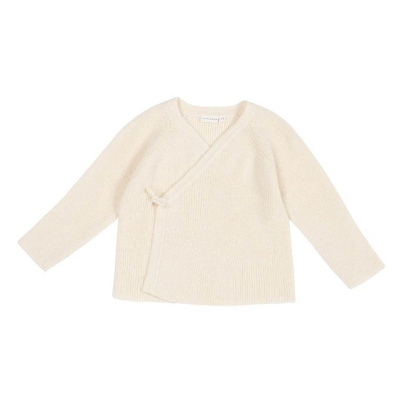 A wrap cardigan is a real musthave in your little one’s wardrobe! This one in the colour soft white is knitted and can be closed by tying the strings on the front. There are buttons underneath the wrap.