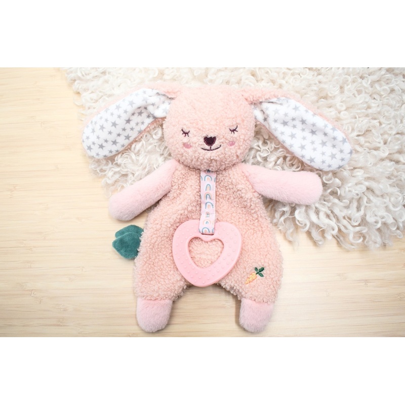 Soft Snuggler: Cute comforting soft toy with different textures and a teether for babies to explore and discover. Can be attached to a pram or stroller.