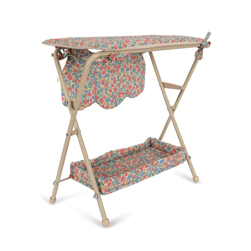 This doll changing table by Konges Slojd is crafted from 100% recycled cotton and boasts an iron frame for long-lasting use. Plus, it offers plenty of storage space for all of your doll’s supplies, while its scallop endings add a touch of charm.
