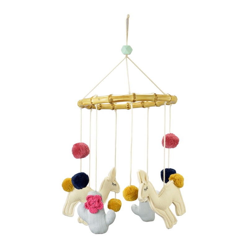 Unser Lama Mobile mit Holzring von Kikadu, passt durch sein natrliches Design mit verspielten und bunten Details aus kologischen Materialien perfekt in jedes Kinderzimmer. ber dem Kinderbettchen fr se Trume oder dem Wickeltisch als Unterhaltung bereitet es den Kleinen mit seinen leichten Bewegungen viel Freude.Modell: 1617701
