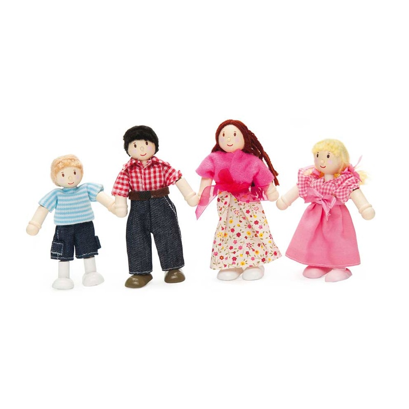 If you are looking for a smart set of tenants for your Le Toy Van dolls house then look no further than this Le Toy Van My Doll Family.This well dressed family comprises Mummy, Daddy, son and daughter, all of whom wear brightly coloured clothes and can be
