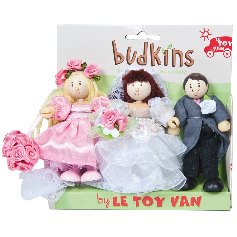 This is the big day, and with our Le Toy Van Wedding Day Set you will have the perfect wedding. This wedding day gift pack set includes 3 special Budkin figurines that are exclusive to this set. The set includes the Bride, Groom and Bridesmaid with hand finished fabric outfits. All Budkins characters are approximately 10cm tall, fully poseable and have real fabric outfits. This gift pack is perfectly scaled for Le Toy Van fairy play sets.
