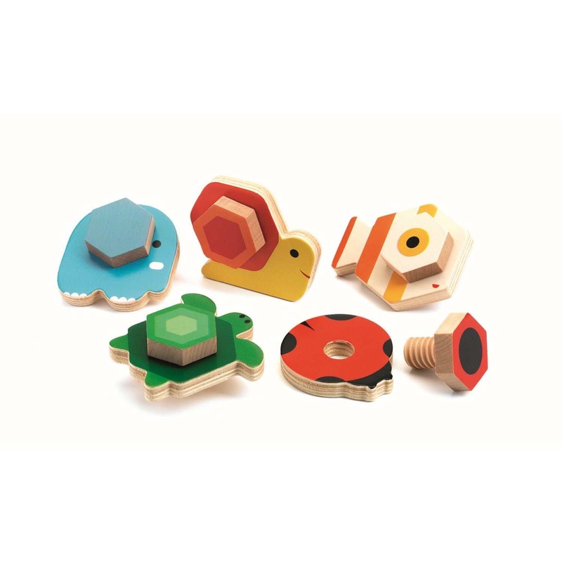 Fnf Holztiere in klassischen Farben zum Zusammenbauen! Das Kind whlt ein Tier und sucht die Schraube mit der passenden Farbe, um es zusammenzubauen. Es schraubt die beiden Teile zusammen, um das Tier wieder zusammenzusetzen. Lernspiel mit 5 Schraubtieren aus Holz Zum ben und erlernen der Drehbewegung Spielerisch Farben und Tiere kennenlernen Frdert die Feinmotorik Aus zertifiziertem HolzInhalt: 5 hbsch gestaltete Holzteile und 5 Holzschrauben.Verpackungsgre: 18,6 x 14 x 4 cmMaterial: HolzAltersempfehlung: +18 Monate