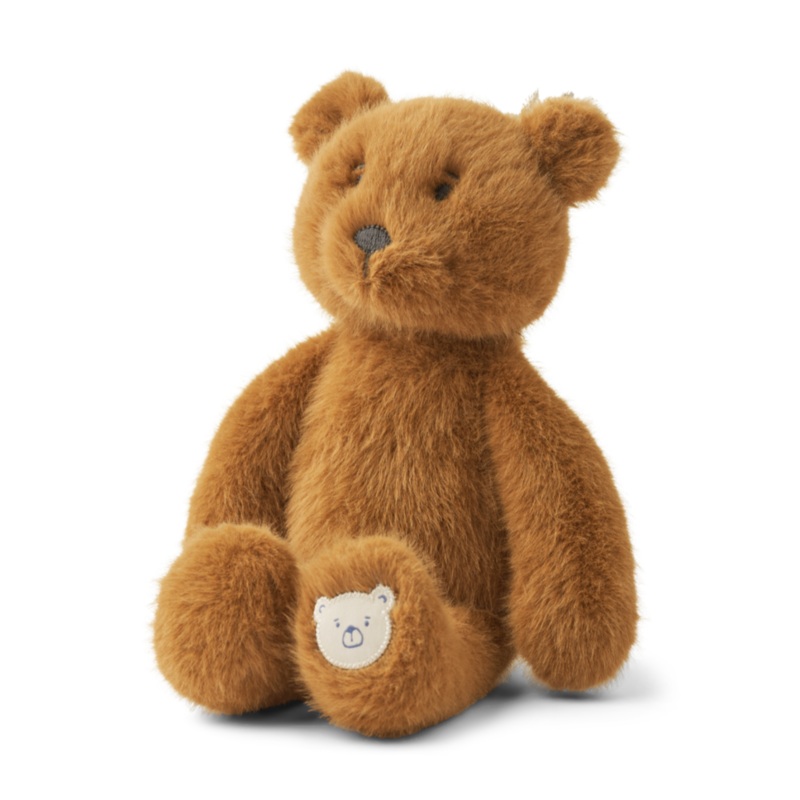 This little plush bear is the perfect snuggle buddy for babies and toddlers. Featuring a delicate bear embroidery on its foot, it pairs wonderfully with a bigger teddy to form a cosy plush family. A charming gift thats sure to be loved for years to come!