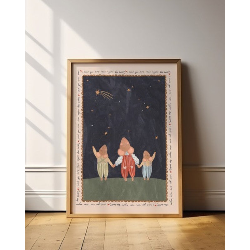 Hand-Painted three Mice Print. The word boarder reads – “I need you more than anyone else darling.” This is part of the Sibling Love Series.