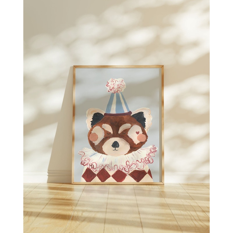 This hand-painted Pierrot Panda print brings a whimsical charm to any Scandi-style circus-themed room, adding a delightful splash of fun to their decor.