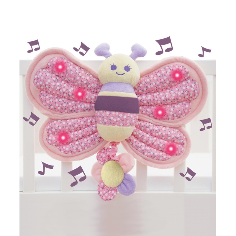 The Little Bird Told Me Musical Twinkles Cot Toy is certain to delight little ones with her soothing lullaby and sparkling light up wings. Pull the flower to start the music and make her pretty little wings twinkle. Attaches easily to cot sides and car sea