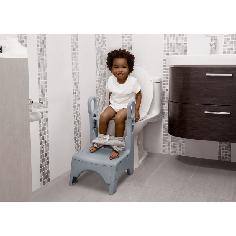 The Little Jon-EE Adjustable Potty Seat and Step Stool by Delta Children is an easy and convenient way to start toilet training with your little one. Combining a potty seat and step stool all into one convenient piece, this ladder seat allows little ones to safely step up, hold the handles and turn around to sit on the toilet–they will feel secure and confident as the begin toilet training! Easy to clean, this ladder seat features an integrated splash guard that makes it perfect for boys or girls to use, and the universal fit and adjustable height ensures it works with most standard round and elongated toilets. What else makes this potty ladder seat awesome? It easily converts to a step stool! Just fold the seat down and use the step stool at the sink, kitchen counter or anywhere else your child needs a boost, the non-slip feet and non-slip step stool surface provide security. Designed in a classic white and grey colorway, the Little Jon-EE Adjustable Potty Seat and Step Stool will coordinate with your existing dcor. Get the Little Jon-EE Adjustable Potty Seat and Step Stool by Delta Children when it’s time for your little one to start their potty-training journey–it will help them conquer toilet training easily and quickly!