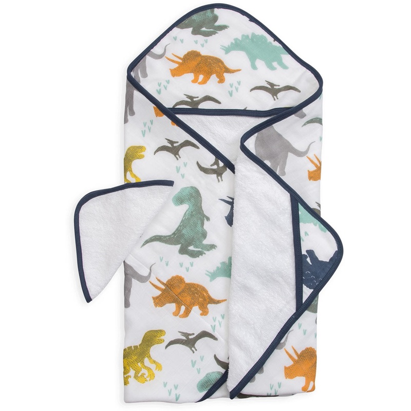 Clean and warm. Bath towel with printed cotton muslin on one side and ultra-soft terry cloth on the other; a cozy hood and pockets for little hands.