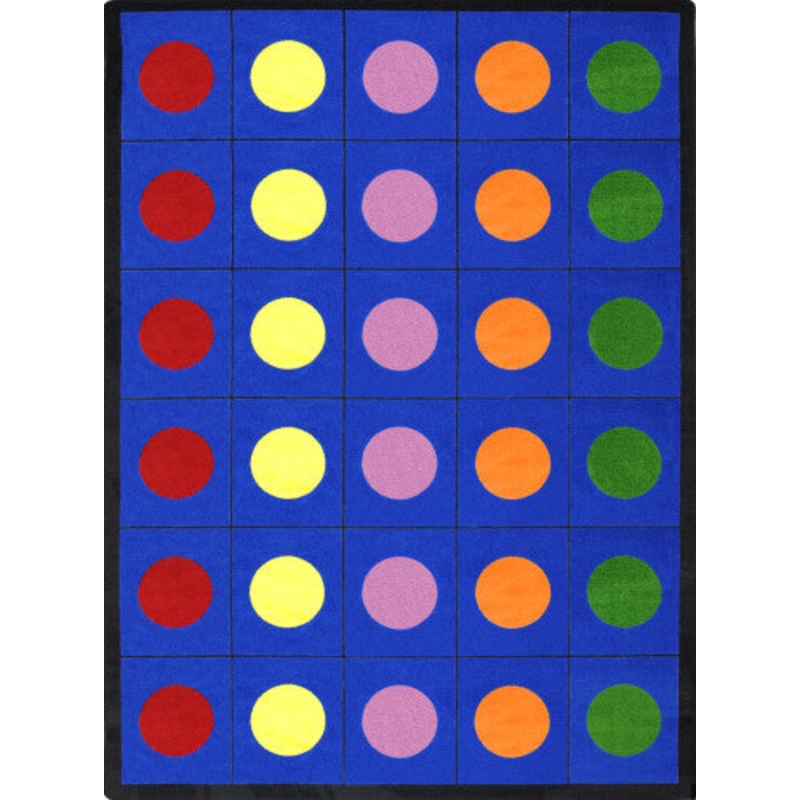 Make the transition from chairs to floor much easier with this organizational rug. Each row has a color, and each child has a dot. With generously sized squares, kids can keep elbows and knees tucked inside. 30 spaces each.