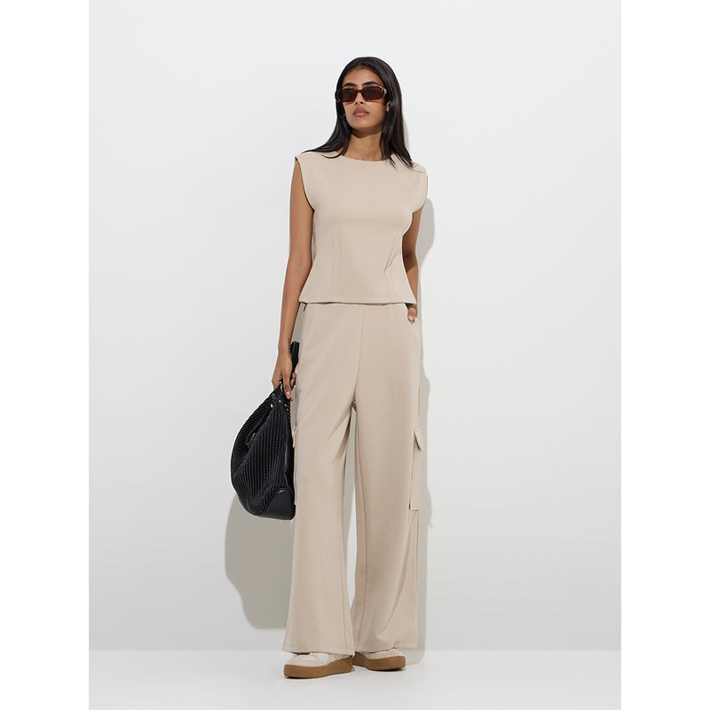 This beige top from LOV is designed with a crew neck and a sleek sleeveless cut for versatile styling. Its cotton-blend composition ensures a flattering and comfortable fit.