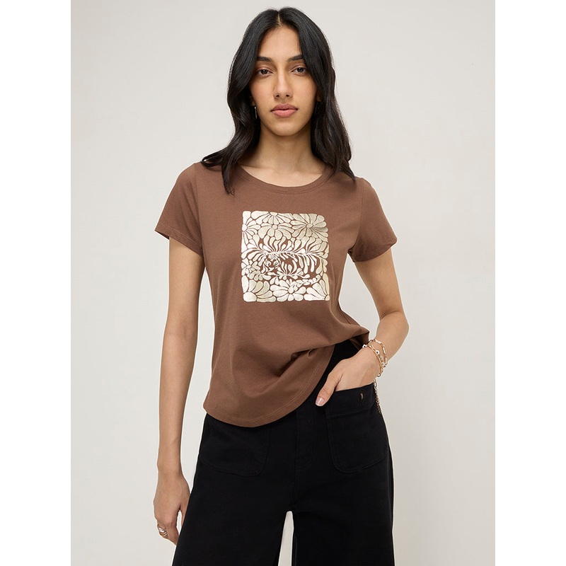 Be the first to review “LOV Brown Floral Design Cotton T-Shirt”