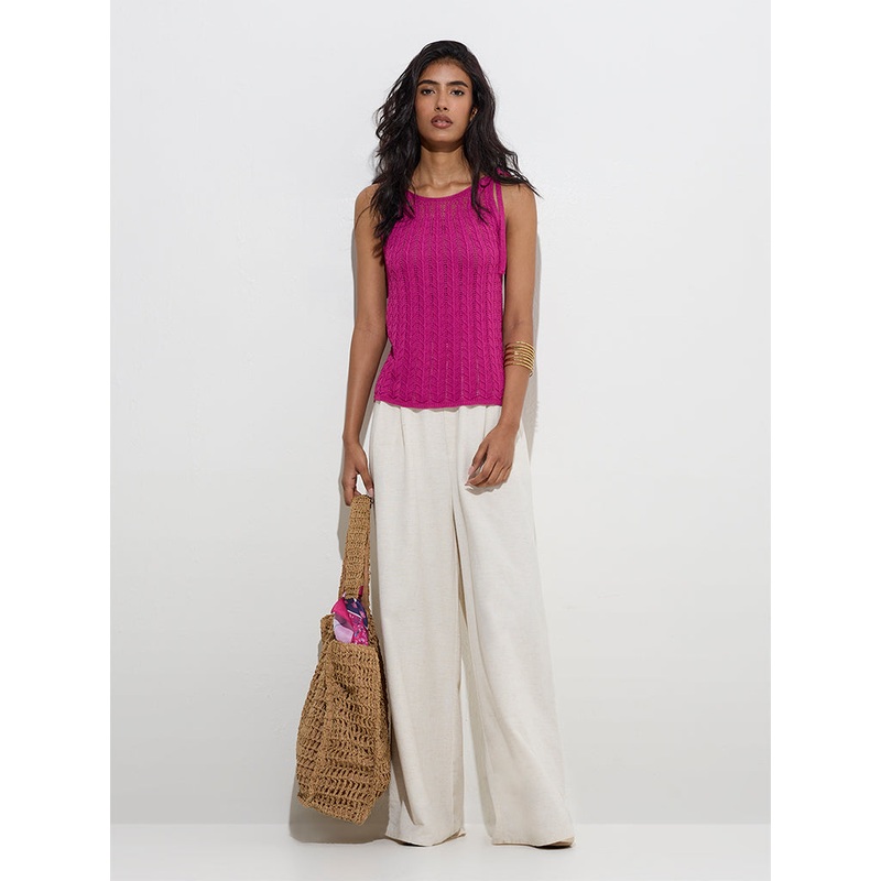 This magenta top from LOV is woven from a lightweight fabric with a knit texture for a snug finish. Framed with a round neckline and slender tie-up straps, it offers an effortless blend of comfort and style.