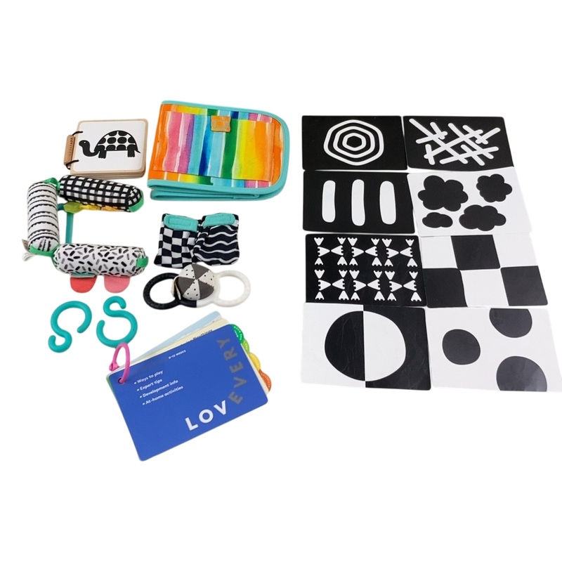 Condition: Gently Used Nothing is more charming than your baby, but this adorable set of developmental toys might just come close! Your little one will be entertained for hours with all of these cute choices. Ideal for babies 0-12 weeks.