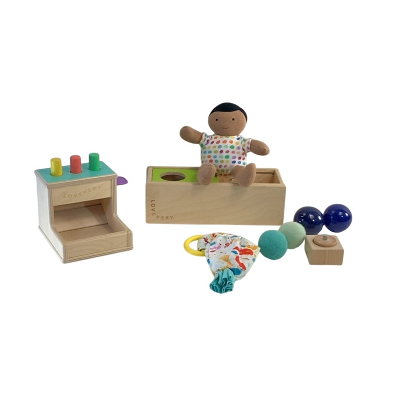 The Thinker Kit is designed for ages 11-12 months and is set up to start guiding children in imaginative play! With great items like a first doll, and more. This kit of toys will get your little problem solver thinking.