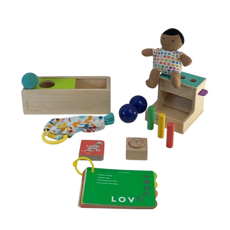 The Thinker Kit is designed for ages 11-12 months and is set up to start guiding children in imaginative play! With great items like a first doll, introductory puzzles, and more. This kit of toys will get your little problem solver thinking.