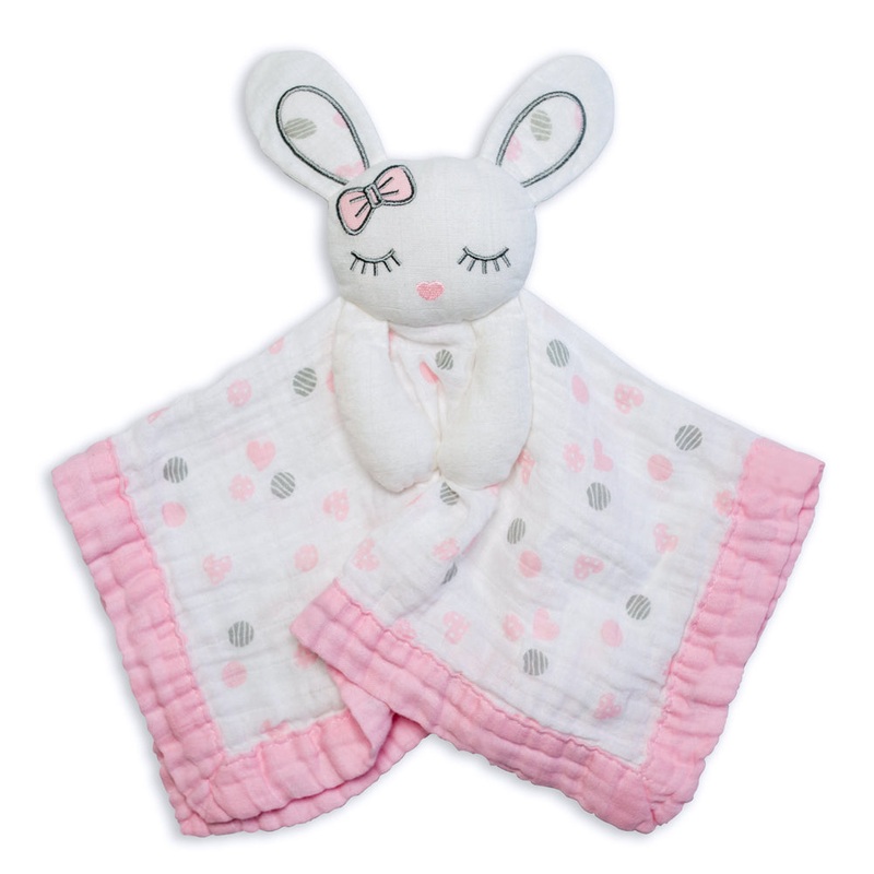 Lulujo Baby Muslin Lovie Blankie Toy – Pink Bunny