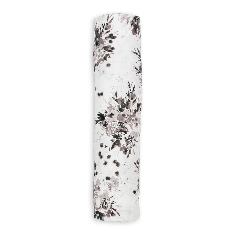 The Black Floral Swaddle was designed by Michigan-based artist and surface designer, Kelly Ventura. We love collaborating with artists and fell in love with her hand-painted prints of fresh florals and playful patterns.