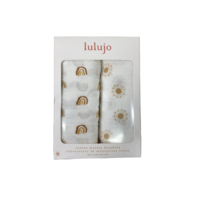 Lulujo Muslin Swaddle Blankets 2 Pack, Rainbow & Suns