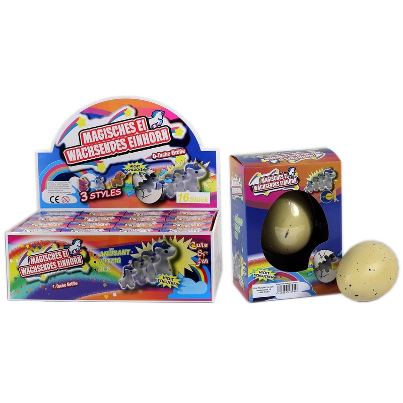 Wenn dieses Einhorn Ei von FunTrading fr 12-24 Stunden ins Wasser gelegt wird, passiert etwas magisches.Ein Zauberhaftes Einhorn bahnt sich seinen Weg durch die Schale und wchst heraus.Modell: 4629Lieferumfang: ein magisches Ei