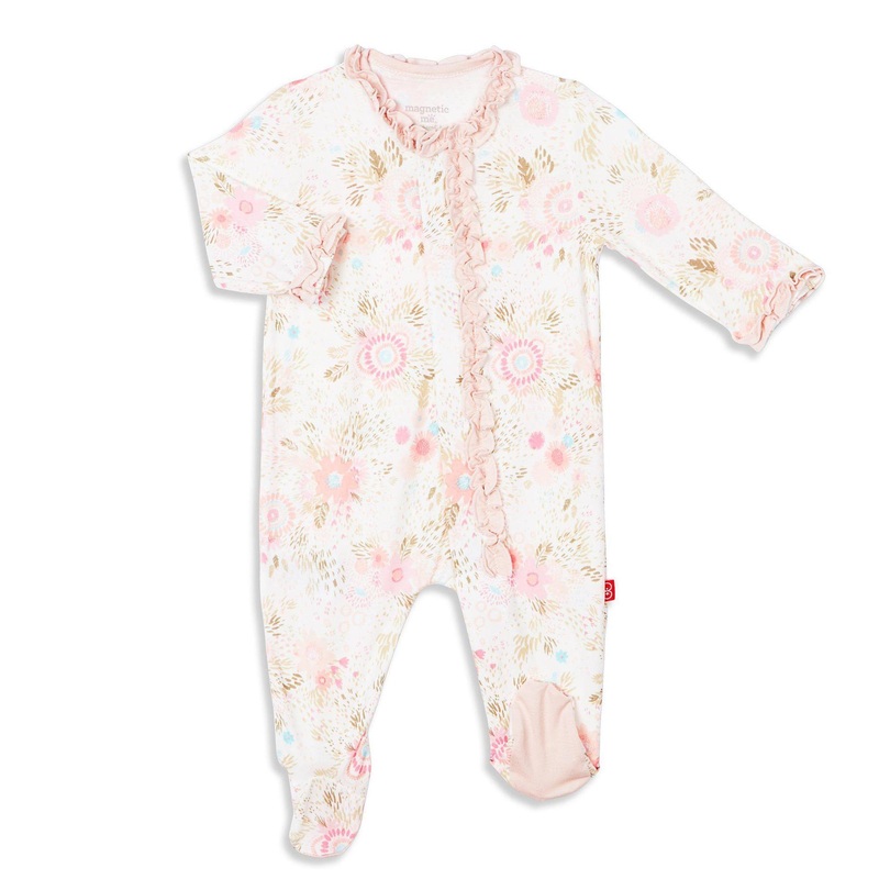 Magnetic Me In Full BloomMagnetic Footie in NewbornOur super silky soft and eco-friendly Magnetic Modal Footie, featuring our time-saving magnetic fasteners, gets baby dressed faster than Clark Kent turns into Superman! No longer dread night changings simp