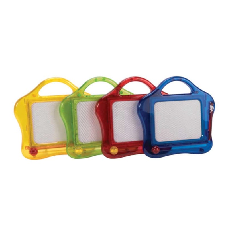 The perfect drawing pad for the car! These magnetic sketchers provide endless drawing fun! Draw with the special pen and swipe the board clean to start again.Details One sketcher included Colors vary