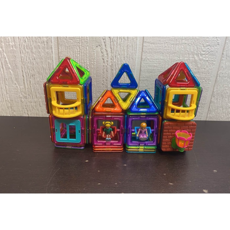 Condition: Gently Used"Set your child's imagination loose with this awesome set of magnetic tiles! Kids can build all sorts of amazing 3D structures while also learning about geometry and magnetism. "