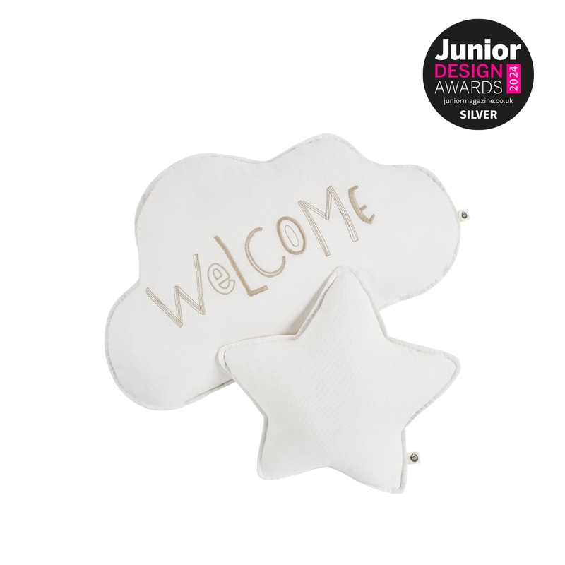 The Gaia Baby Maia collection provides the finishing touch to your nursery decor. Made of the softest, certified pure organic cotton, these carefully curated pieces will complement any theme with a refined and muted palette. Choose from Soft White, Sand or Blush to create your own look. The Maia Decorative Pillow set contains 2 cushions in Cloud and Star shapes that can be used for decorative effect throughout the nursery and child’s room.